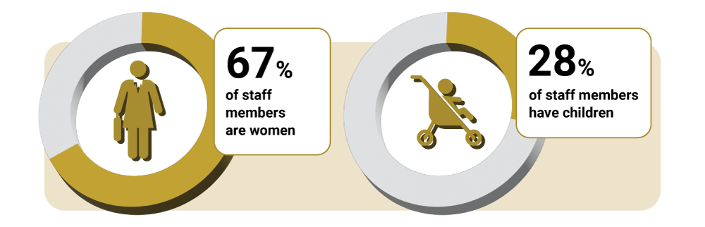 We have a 67% workforce of women at Oakwood Solicitors that work part time, full time, or flexi-hours to ensure that they achieve a work-life balance with their children, friends and family. This is also highlighted in that 28% of our staff have children.
